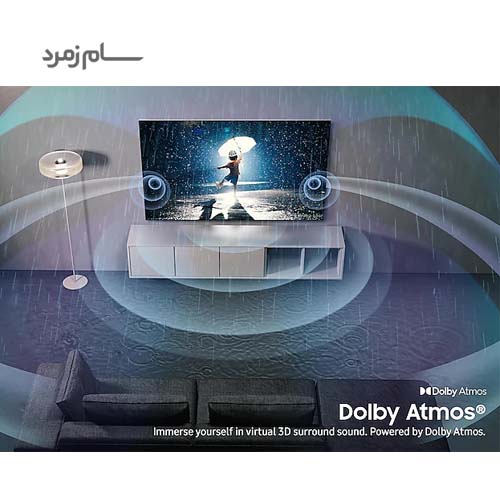 تلویزیون 55QN700B سیستم صوتی 4.2 کاناله دارد و با استفاده از 4 بلندگوی 10 واتی و 2 ووفر 10 واتی، در مجموع صدای فراگیر و سه بعدی 60 واتی را در اختیار شما قرار می دهد. بلندگوهای QN700B صدا را به سمت جلو (Front Firing) و پایین (Down Firing) شلیک می کنند. تکنولوژی Adaptive Sound+ با توجه به شرایط محیط و محتوای در حال پخش، صدا را تنظیم می کند در نتیجه همیشه بهترین کیفیت صدا را خواهید داشت.Active Voice Amplifier یکی دیگر از فناوری هایی است که سامسونگ در این تلویزیون به کاربرده است و با تشخیص نویز و سر و صدا در محیط، صدای گویندگان را بهبود می دهد تا در محیط های شلوغ نیز بتوانید به راحتی دیالوگ ها را بشنوید. همچنین تکنولوژی Object Tracking Sound Lite موجب می شود صدای تلویزیون از جایی که در تصویر تولید می شود پخش شده و در نتیجه صداها را دقیق تر و واقعی تر بشنوید. جهت بهبود کیفیت صدای این تلویزیون از تکنولوژی Dolby MS12 2ch استفاده شده که شامل تکنولوژی های Dolby Digital ،Dolby Digital Plus ، Doly Audio و Dolby AC4 می باشد و یک تجربه صوتی عالی را برای شما به ارمغان می آورد. فناوری Dolby Atmos نیز صدای سینمایی ارائه می دهد. قابلیت Dual Audio Support به شما این امکان را می دهد تا تلویزیون را به دو دستگاه بلوتوثی مانند هدفون، ساندبار یا بلندگو متصل و صدا را از طریق آن ها پخش کنید. در صورتی که این تلویزیون را به ساندبار یا سیستم صوتی سامسونگ که دارای تکنولوژی 2.0 Q-Symphony است متصل کنید، می توانید صدا را به صورت هماهنگ و هم زمان، از تلویزیون و سیستم صوتی بشنوید.